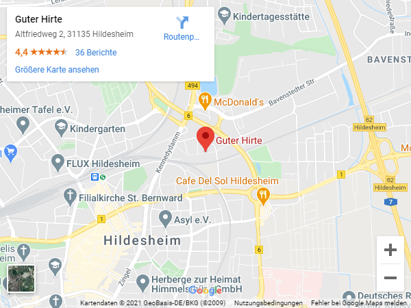 Die katholische Kindertagesstätte Guter Hirt gibt es seit 1963. Unsere Einrichtung liegt im östlichen Teil von Hildesheim. Das Einzugsgebiet umfasst neben der direkten Umgebung auch weiter entfernte Stadtteile ( Stadtfeld, Nordstadt, Drispenstedt ). Viele Familien haben einen Migrationshintergrund.