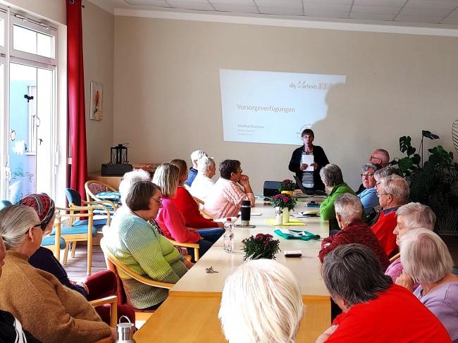 Der Referent Manfred Marhenke, Geschäftsführer des Betreuungsvereins Hildesheim e. V., reicherte seinen interessanten Vortrag mit zahlreichen anschaulichen Fallbeispielen an. Er betonte, wie elementar eine rechtzeitige und gute Vorsorge ist, damit im Fall einer Geschäftsunfähigkeit die eigenen Wünsche auch umgesetzt werden. Außerdem klärte er über die Unterschiede zwischen Vorsorgevollmacht, Betreuungs- oder Patientenverfügung auf. Anschließend stand Manfred Marhenke den einzelnen Teilnehmer*innen für persönliche Fragen zur Verfügung.